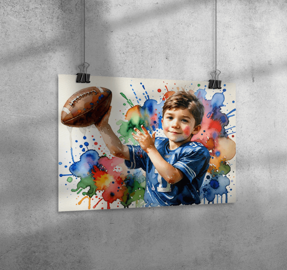 It’s easy! Just upload a face photo (optional), type in a creative prompt like “a boy riding a dragon through the clouds”, and our AI will generate a custom image for you. Then you can choose a product like a canvas, mug, or blanket to print your image on.